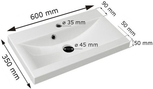 - Umywalka: 60cm / 5cm / 35cm