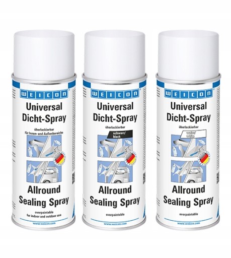 WEICON Allround Sealing Spray to tworzywo sztuczne do natryskiwania o silnej przyczepności do uszczelniania przecieków. Został opracowany specjalnie do uszczelniania najdrobniejszych pęknięć i szwów wewnątrz i na zewnątrz. Może być stosowany do uszczelniania takich rzeczy jak rynny, rury kanalizacyjne i drenażowe, przyczepy kempingowe, domy mobilne, łodzie, dachy, okna, ściany basenów, folie stawowe, szyby komórkowe i szyby wentylacyjne. Spray można malować, jest wodoodporny i odporny na warunki atmosferyczne. Chroni metale przed korozją, nie zawiera bitumu i silikonu. Allround Sealing Spray przywiera do wielu powierzchni, takich jak kamień, metal, plastik, drewno, emalia i inne.