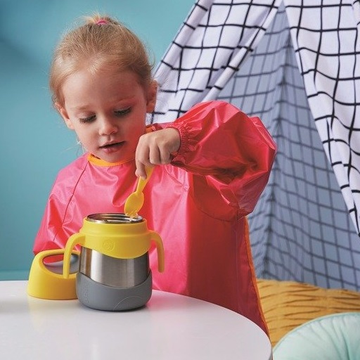 Niezwykle praktyczny i estetycznie wykonany dziecięcy termos na jedzenie firmy B.Box. Wykonany z wysokiej jakości stali nierdzewnej. Stal nie wchodzi w reakcję z produktami spożywczymi. Podwójne ścianki doskonale utrzymują temperaturę. Według testów firmy B.Box termos potrafi utrzymać temperaturę ciepłego posiłku do około 5 godzin, zimnego do około 7 godzin*. Termos jest bardzo funkcjonalny i prosty w użyciu przez dzieci. Razem z termosem w zestawie jest plastikowy łyżeczko-widelec.