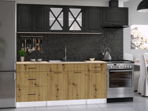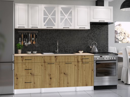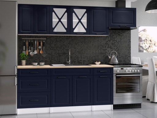 - wysokość szafek dolnych: 86 cm (2,8 cm blat/ 10 cm cokół)