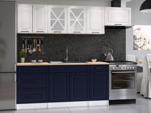 - wysokość szafek dolnych: 86 cm (2,8 cm blat/ 10 cm cokół)