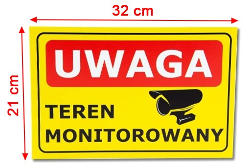 ⚫ TABLICA PCV 32x21 UWAGA TEREN OBIEKT MONITOROWANY ŻÓŁTA