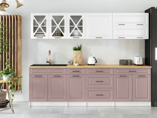 - wysokość szafek dolnych - 86 cm (2,8 cm blat/10 cm cokół)