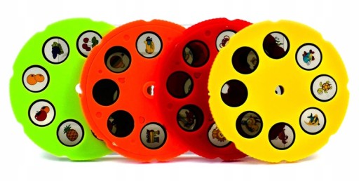 - 4 komplety wzorów do rzutnika (1 kółeczko posiada 8 obrazków)
