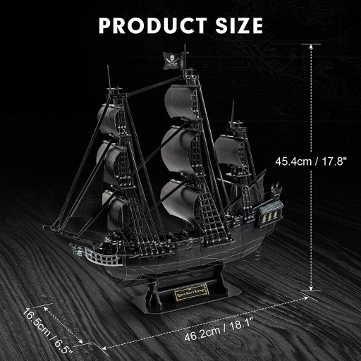 PUZZLE 3D ZEMSTA KRÓLOWEJ ANNY, to pasjonująca zabawa dla dzieci oraz kolekcjonerów statków i okrętów. W opakowaniu znajduje się 180 EL. puzzli, wykonanych ze specjalnego materiału przypominającego piankę. Puzzle są ponumerowane, ponacinane i umieszczone na arkuszach. Wystarczy bez użycia siły wycisnąć element z arkusza i zmontować go zgodnie z dołączoną instrukcją, bez użycia kleju ani specjalnych narzędzi.