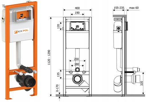 - Przeznaczony do miski wiszącej o rozstawie otworów 18 lub 23 cm