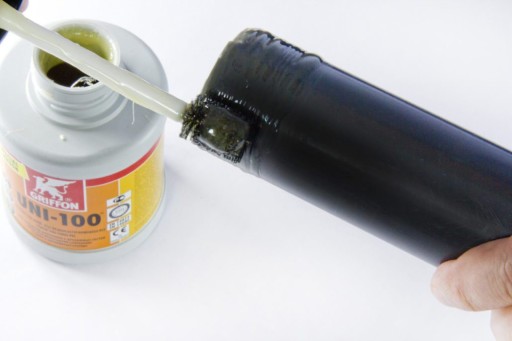 Najpopularniejszą metodą łączenia kształtek PVC-u jest klejenie. Proces ten nie jest skomplikowany i nie wymaga dodatkowych urządzeń jak np. przy połączeniach zgrzewanych. Do trwałego, szczelnego i odpornego mechanicznie wykonania sklejenia, konieczne jest użycie oczyszczacza, który odtłuszcza i zmiękcza PVC-U przed klejeniem, oraz staranność wykonania. Minimalna temperatura klejenia to +5°C