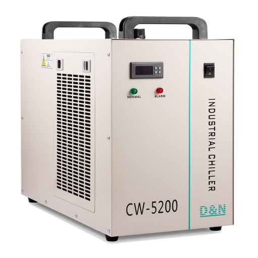Przeznaczony do chłodzenia tub w ploterach laserowych co2 dzięki zastosowaniu agregatu chłodzącego. Chiller CW5200 utrzymuje temperaturę wody na odpowiednim poziomie. Dzięki takiemu chłodzeniu, parametry pracy tuby laserowej są stabilne.