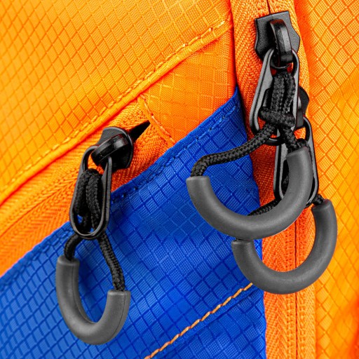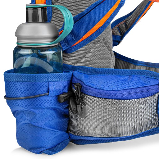 Mała kieszonka na froncie ułatwia dostęp do najbardziej potrzebnych przedmiotów. Do dyspozycji pozostają także inne kieszenie. W plecaku przewidziano także miejsce na bukłak z wodą. Zawiera specjalną kieszeń, wieszak, otwory i mocowania na paskach naramiennych.