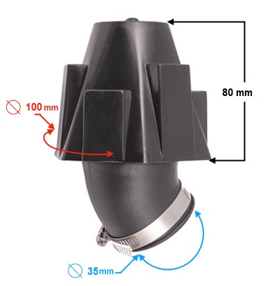 Filtr powietrza stożkowy zabudowany kątowy 45 stopni 35 mm.