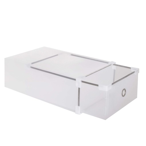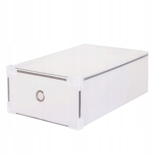 Pojemnik na obuwie został wyposażony w wysuwaną szufladę, które pozwoli na szybki dostęp do wybranych butów. Dodatkowo pudełko posiada specjalne zaczepy pozwalające na łączenie ze sobą pudełek umożliwiając tym samym ułożenie je na sobie. Używając organizera z zamknięciem buty zostaną ochronione przed kurzem oraz wilgocią.