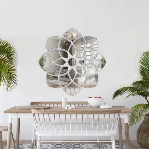Do mocowania lustra akrylowego stosuje się taśmę dwustronną, dzięki czemu każdy fragment przylega do ściany. W przesyłce zamówienia -złożonego z wielu elementów tworzących określony wzór - dołączony jest schemat montażu. Przy skomplikowanych wzorach często jest także szablon, według którego należy mocować elementy lustrzanej dekoracji. Dzięki temu powstaje symetryczna kompozycja o zaplanowanych odległościach. Należy tylko delikatnie zdjąć wierzchnią folię ochronną i odsłonić lśniące lustro.