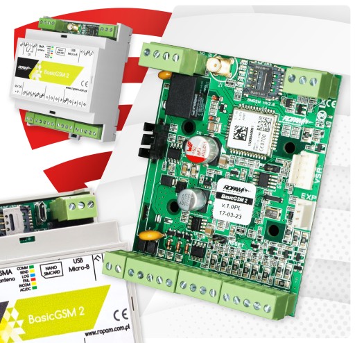 Moduł Ropam BasicGSM-D4M 2 jest przeznaczony do integracji z centralami alarmowymi, sterownikami, przekaźnikami i innymi urządzeniami tego typu. Dzięki wbudowanemu modułowi GSM wysyła powiadomienia głosowe, mailowe oraz SMS-owe o zdarzeniach w systemie oraz może być zdalnie sterowany. Posiada dwa wejścia analogowe, które pozwalają na podpięcie dodatkowych modułów rozszerzających jego funkcje (np. czujnika temperatury) .