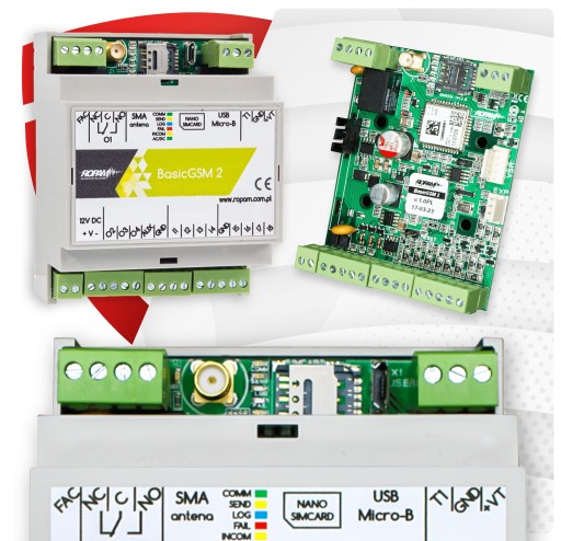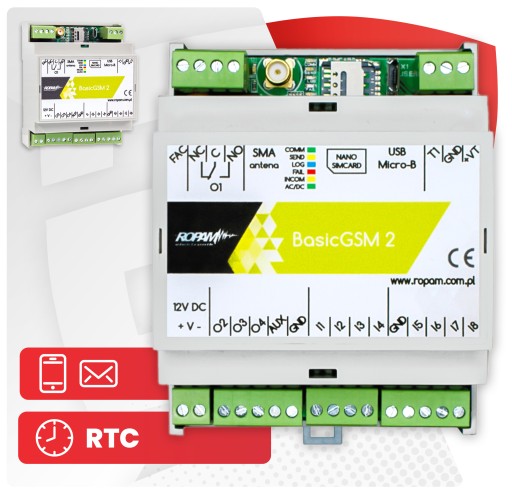Moduł BasicGSM-D4M 2 ROPAM Powiadomienie GSM SMS E-MAIL GPRS, DIN, 8 wejść