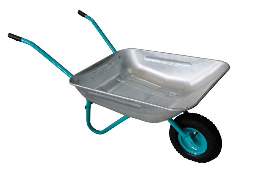 🍃 Taczka jest ocynkowana z tłoczoną misą z zaokrąglonymi brzegami, o pojemności 80 l i maksymalną ładownością 60 kg, zapewni długi okres użytkowania. Uchwyty zostały pokryte miękkim tworzywem sztucznym w celu wygody użytkowania.