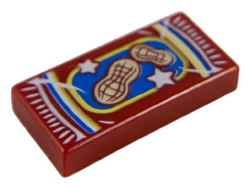 Lego Tile 1 x 2 with Groove with Peanuts Bag Package and Tan Peanuts on Blue Background Pattern