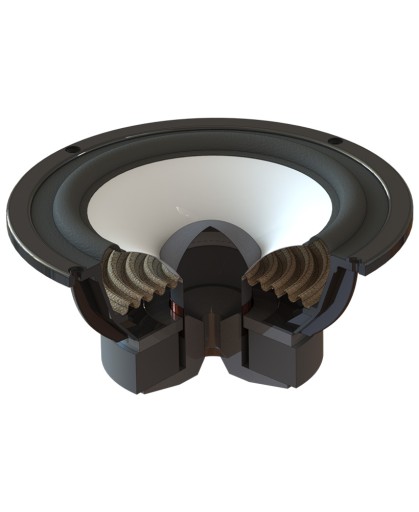 - Cewka głośnika wykonana z najlepszej klasy aluminiowego drutu nawojowego CCAW, nawijana na ultra precyzyjnych szwajcarskich nawijarkach firmy Meteor.