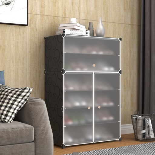 Czarna szafka modułowa regał na buty, 24 pary butów, łazienka, garaż, pokój