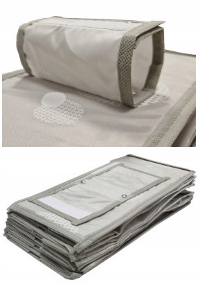Organizer zawieszany jest przy pomocy zaczepu zapinanego na rzep. Dzięki takiemu rozwiązaniu można łatwo zdjąć organizer i przenieść go w inne miejsce . Został tak zaprojektowany aby zmieścić się w każdej szafie . Po złożeniu zajmuje niewiele miejsca .