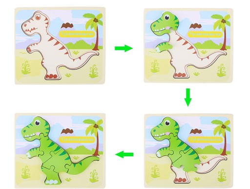 Układanie drewnianych puzzli 3D w kształcie DINOZAURÓW pozytywnie wpływa na rozwój dzieci. Rozwija motorykę, pobudza wyobraźnię i logiczne myślenie oraz zapewnia wielogodzinną zabawę pełna emocji.