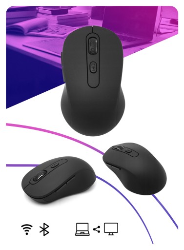 Mysz to bezprzewodowa mysz optyczna Bluetooth do komputerów przenośnych, stacjonarnych, jak i urządzeń z systemem Android jak np. Tablety.