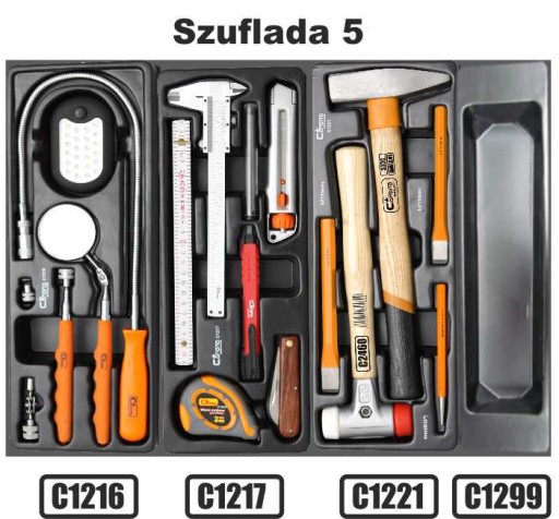 Nowy model - wózek warsztatowy 7 szuflad wraz z wyposażeniem. Łącznie zawiera 253 kluczy i narzędzi marki CORONA. Wózek narzędziowy zawiera szeroki przekrój narzędzi, kluczy oraz bity, klucze trzpieniowe, klucze nasadowe oraz szczypce.