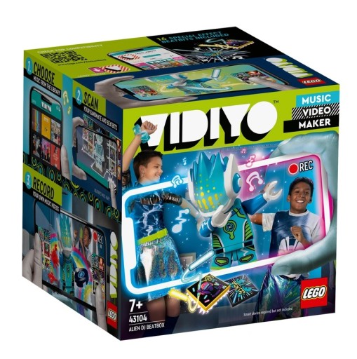 Zainspiruj dzieci do reżyserowania i grania we własnych teledyskach dzięki zestawowi LEGO VIDIYO Alien DJ BeatBox (43104). Zawiera: minifigurkę kosmicznego DJ-a, akcesorium do nagrywania LP, 14 losowych bitów BeatBits i 2 specjalne BeatBity. Pobierz bezpłatną aplikację LEGO VIDIYO, aby zeskanować minifigurkę i efekty specjalne BeatBits. Dzieci będą zachwycone, gdy ich postać ożywa w teledysku.