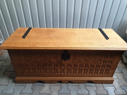 Piękna skrzynia drewniana świetne wykonanie oraz wysokiej jakości materiał.