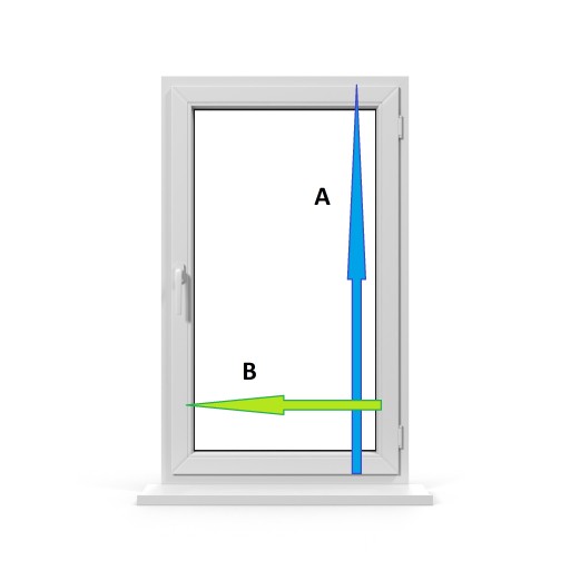 - B szerokość szyby wraz z listwami przy szybowymi, oraz wysokość ramy okiennej.
