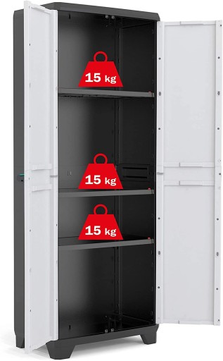 Szafa sprawdzi się do przechowywania w garażu, piwnicy, łazience na tarasie... Jest całkowicie odporna na wilgoć. Tworzywo z którego jest wykonana nie wymaga praktycznie żadnych zabiegów konserwacyjnych. Do czyszczenia wystarczy wilgotna szmatka i woda z odrobiną łagodnego detergentu.