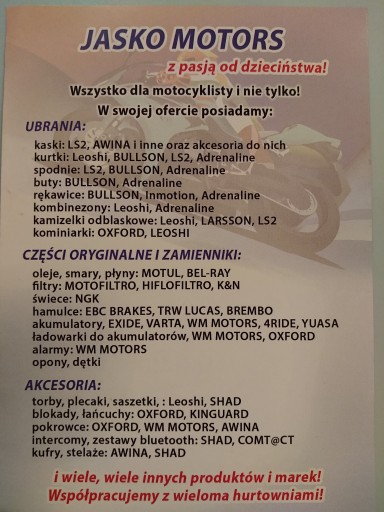 JEŚLI MASZ JAKIEKOLWIEK PYTANIA ODNOŚNIE PRODUKTU LUB SZUKASZ JAKIEJŚ CZĘŚCI DO SWOJEJ MASZYNY LUB KASKU/UBRANIA