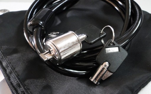 Chroni notebooki przed kradzieżą lub niechcianym wypożyczeniem. Kompatybilny ze wszystkimi notebookami, komputerami stacjonarnymi, stacjami dokującymi i płaskimi monitorami wykorzystującymi wbudowane gniazdo zabezpieczeń kensington. Konstrukcja w 100% ze stali nierdzewnej. Pętla zabezpieczająca z pętlą jest wykonana ze stali ocynkowanej i grubsza niż standardowe kable dostępne na rynku. Kabel można owinąć wokół nieruchomego obiektu w biurze, na lotnisku lub w dowolnym miejscu.