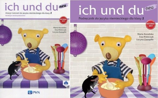 "ich und du neu 2" to wieloletni podręcznik zgodny z nową podstawą programową obowiązującą od września 2017 roku. Kurs jest ceniony przez nauczycieli za ciekawą tematykę, piosenki i pacynkę misia Theo, który pomaga wzbudzić zainteresowanie i motywację uczniów.