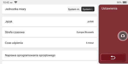 Urządzenie posiada wsparcie dla języka Polskiego w większości urządzenie ma przetłumaczony język Polski. Jeśli brak tłumaczenia wymagany dostęp do Internetu w celu tłumaczenia online.