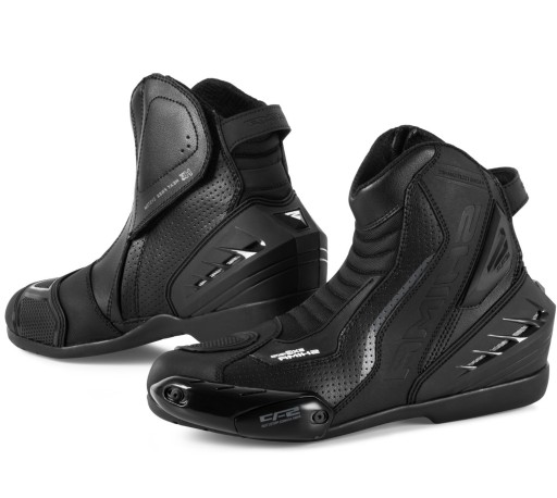 Buty SX-6 to świetny wybór zarówno do jazdy sportowej, jak i jazdy miejskiej. Wykonane z certyfikowanej skóry z mikrofibry o wysokich standardach ochrony (klasa ścieralności). Sztywna pięta - wzmacnia tylną część buta, podczas gdy metalowy suwak z boku chroni bok i górę stopy razem z usztywniaczem ukrytym pod skórą. Podeszwa systemu SafeFoot jest wzmocniona pionowo. Specjalna syntetyczna podkładka umieszczona na wierzchu pozwala na bardziej precyzyjne sterowanie dźwignią zmiany biegów. Perforowana skóra z przodu buta pozwala na lekką wentylację i cyrkulację powietrza wewnątrz buta. SX-6 są wyposażone w pasek ułatwiający zakładanie buta.