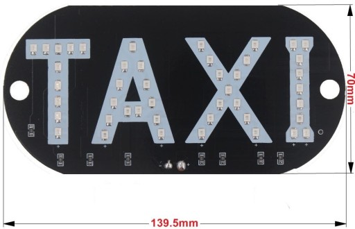 Taxi Ledowy Napis Lampa Niebieska Diody Tabliczka LED