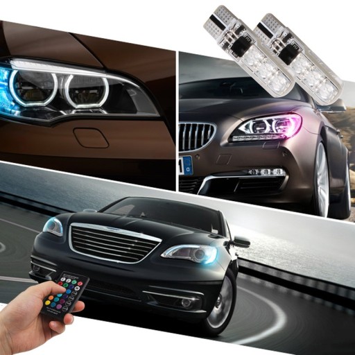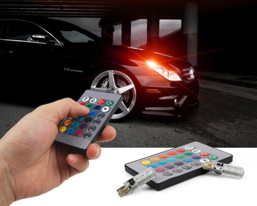 Wysokiej jakości oświetlenie LED RGB podkreśli zarówno z zewnątrz jak i wewnątrz kształty Twojego samochodu. Dzięki możliwości bezprzewodowej kontroli za pomocą pilota może stworzyć niesamowite efekty wizualne. Żarówki można stosować jako światła pozycyjne, podświetlenie tablicy rejestracyjnej , oświetlenie schowka, drzwi, bagażnika i innych elementów wnętrza samochodu.