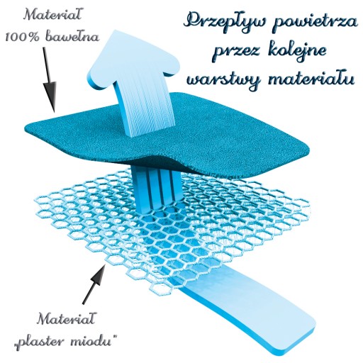 Dzięki specjalnemu materiałowi o wyglądzie plastra miodu, wkładka zapewnia lepszą cyrkulacje powietrza oraz ogranicza pocenie dziecka.