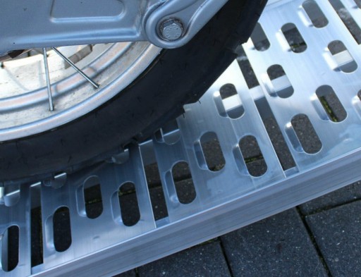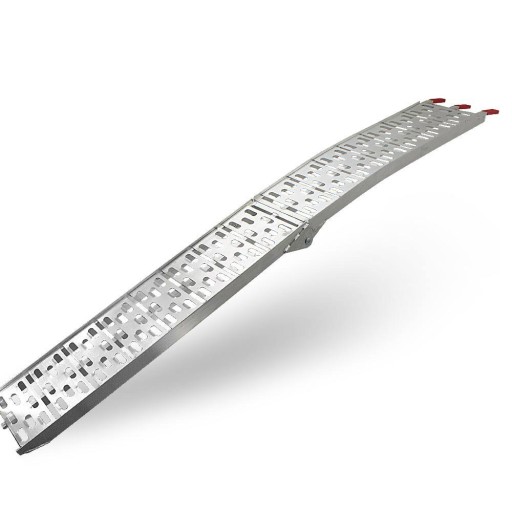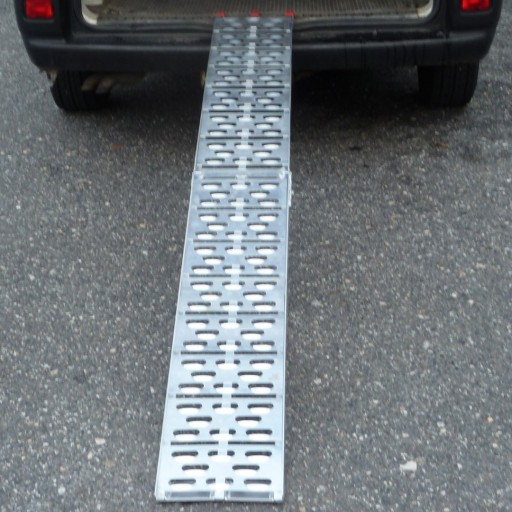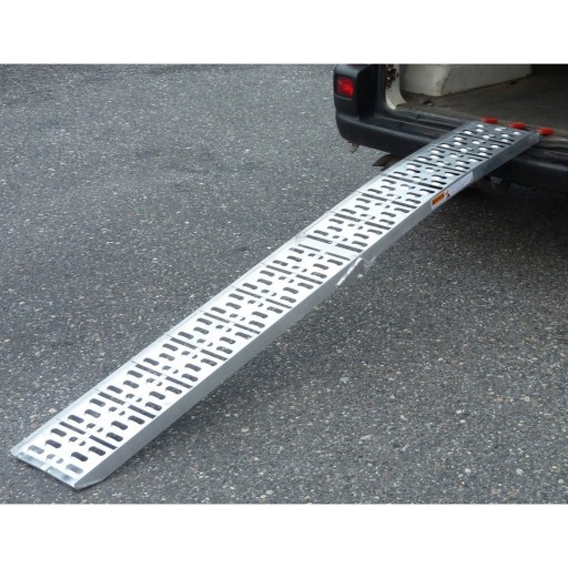 Aluminiowy podjazd o udźwigu 340kg. Bardzo solidny i łatwy w użyciu. Idealny do załadunku motocykli, kosiarek, skuterów, sprzętu budowlanego, itp. Bardzo solidny i łatwy w użyciu