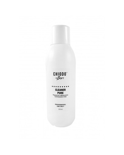 ChiodoPRO CLEANER PURE to profesjonalny preparat do odtłuszczania naturalnej płytki paznokcia oraz do przemywania warstwy dyspersyjnej żeli oraz topów.