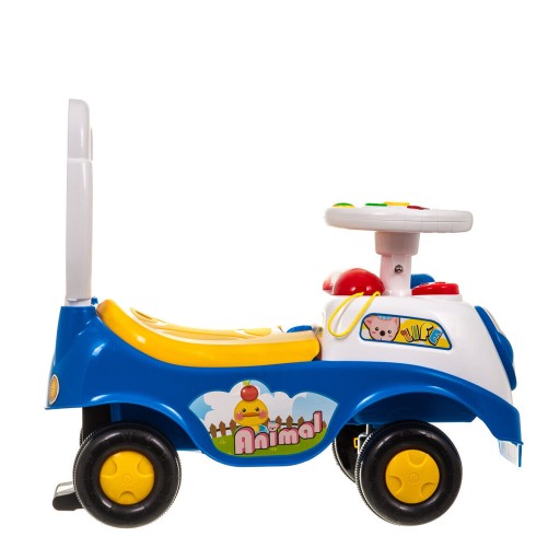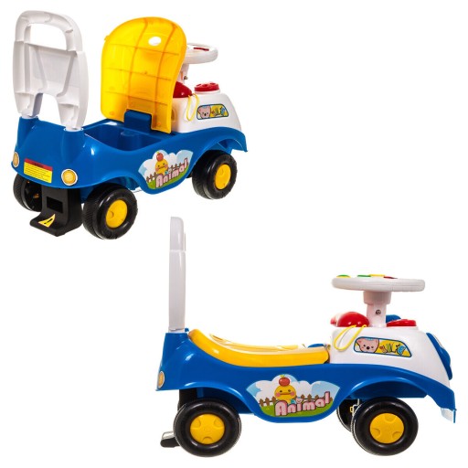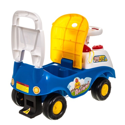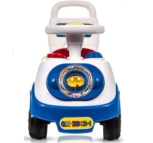 Jeździk wykonany jest z trwałego, mocnego plastiku o żywej kolorystyce. Skrętne przednie koła z blokadą kąta skrętu dla zapewnienia bezpieczeństwa dziecka, a klakson w kierownicy urozmaici zabawę. Jeździk nadaje się do zabawy zarówno w domu jak i na podwórku.