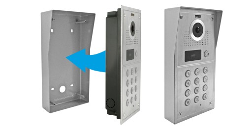 Możliwy jest natynkowy montaż stacji bramowej. W tym celu należy dokupić dedykowaną osłonę: