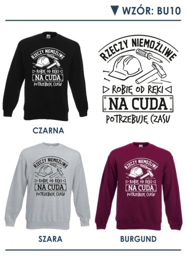 Lekka bluza Fruit of the loom na prezent dla budowlańca, 3 kolory - 10 wzorów do wyboru.