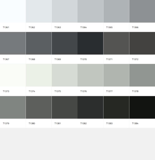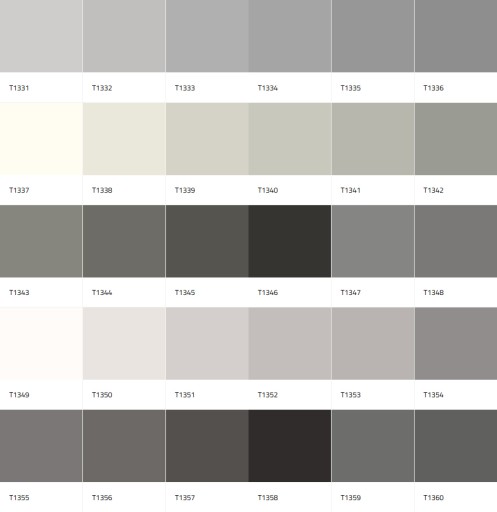 Jak poniżej lub też w wybranych kolorach RAL - 1001, 1015, 1019, 1020, 1023, 3000, 5005, 5010, 6013, 7035, 7040, 7042, 9001, 9003, 9005, 9010, 9016.