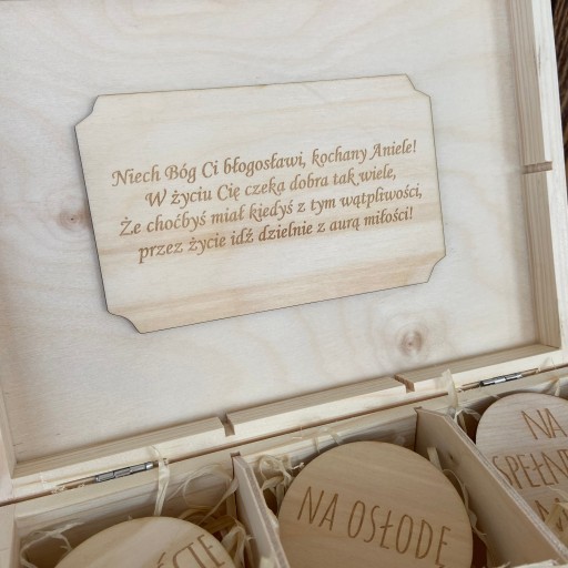 - Wygrawerowane życzenia w środku pudełka