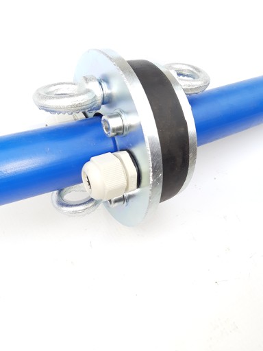 Po skręceniu czterech śrub, uszczelka głowicy pewnie zaciska się na ściankach studni oraz rurze tłocznej. Dławik pozwala przepuścić przewód zasilający pompę, drugi dławik umożliwia montaż sondy zabezpieczającej przed suchobiegiem lub można go zaślepić.