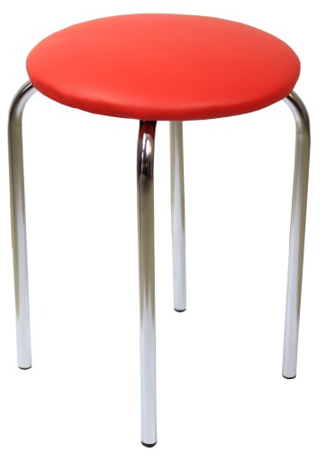 SIEDZISKO naszego taboretu wykonane jest z płyty meblowej o grubości 18mm, która jest wyłożona pianką tapicerską i pokryta eko-skórą w kolorze czerwonym.
