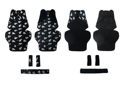 Dwustronna wkładka do wózka dziecięcego z poduszeczką "SKRZYDEŁKA" wraz z ochraniaczami na pasy i barierkę wykonane są z POLIESTRU w różnych wzorach i kolorach połączonych z miłym w dotyku VELVETEM (MINKI). W wewnątrz wkładka wypełniona jest gąbką o grubości 10 mm i ovatą.
