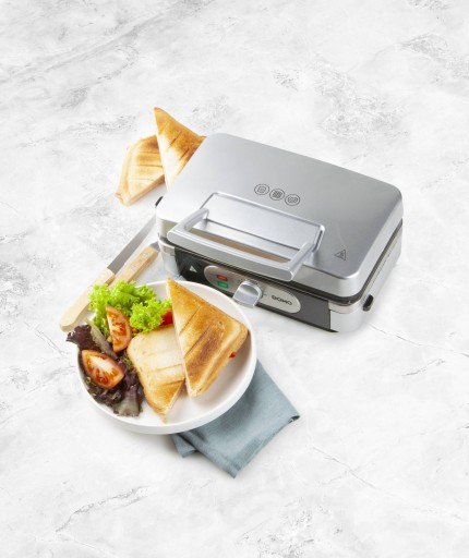 Możesz także zostać mistrzem grillowania dzięki dołączonym płytkom. Osiągnij perfekcyjne rezultaty za każdym razem i zachwyć swoich najbliższych bez względu na ich kulinarne preferencje. Wygodna regulacja mocy pozwoli na wypiek zgodnie z oczekiwaniami.