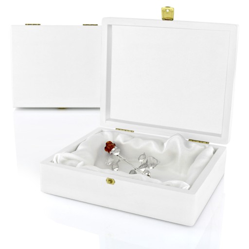 Piękna wieczna róża w eleganckim białym pudełeczku z drewna. To świetny pomysł na prezent z okazji chrztu świętego dla dziewczynki. Łodyga została wykonana ze srebra próby 925, natomiast kwiat z kamienia bursztynu. Płeć piękna uwielbia kwiaty nieważne w jakim jest wieku, tym samym prezent ten jest idealnym pomysłem.